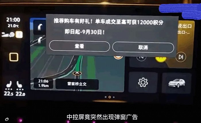 目前,相关监管部门尚未对车辆弹窗提示推出相应约束规定,这或许也使得部分汽车公司开始觊觎在中控屏上布置增值业务。