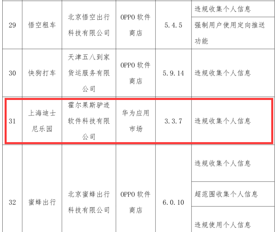 10月27日,工信部网站发布了关于侵害用户权益行为的APP通报(2020年第五批),名单显示,包括“上海迪士尼乐园”在内的131款App在列,这些APP应在11月2日前完成整改落实工作。通报显示,“上海迪士尼乐园”APP存在违规收集个人信息的问题。