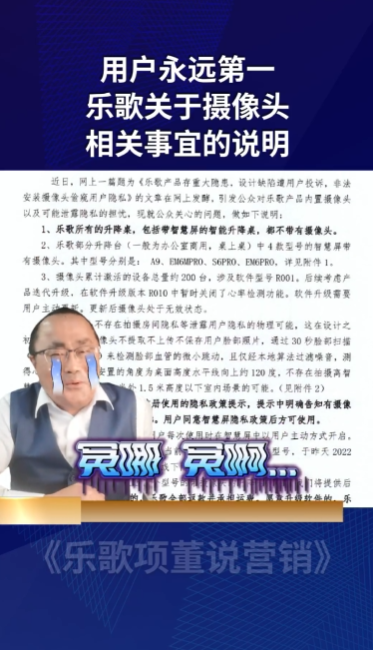 10月27日,乐歌股份董事长项乐宏发布视频“喊冤”,并表示智能升降台(桌上桌)的智慧屏和无接触心率检测属于科技创新,摄像头不存在拍摄房间或办公室隐私等泄露用户隐私的物理可能。