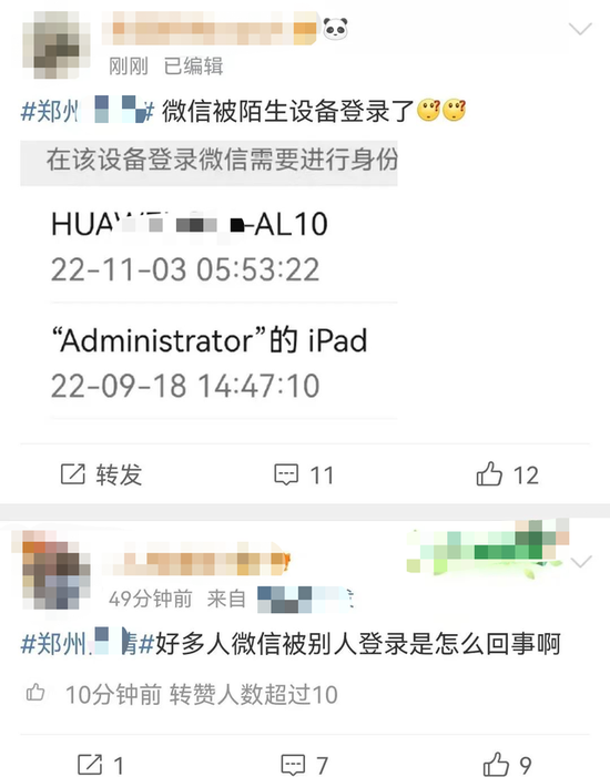 11月3日,全国多地网友在社交平台反映“微信被不知名设备登录过”,还表示不是自己操作的、对此也不知情,随后有网友发现登录时间在凌晨,担心微信被监控,造成隐私泄露。