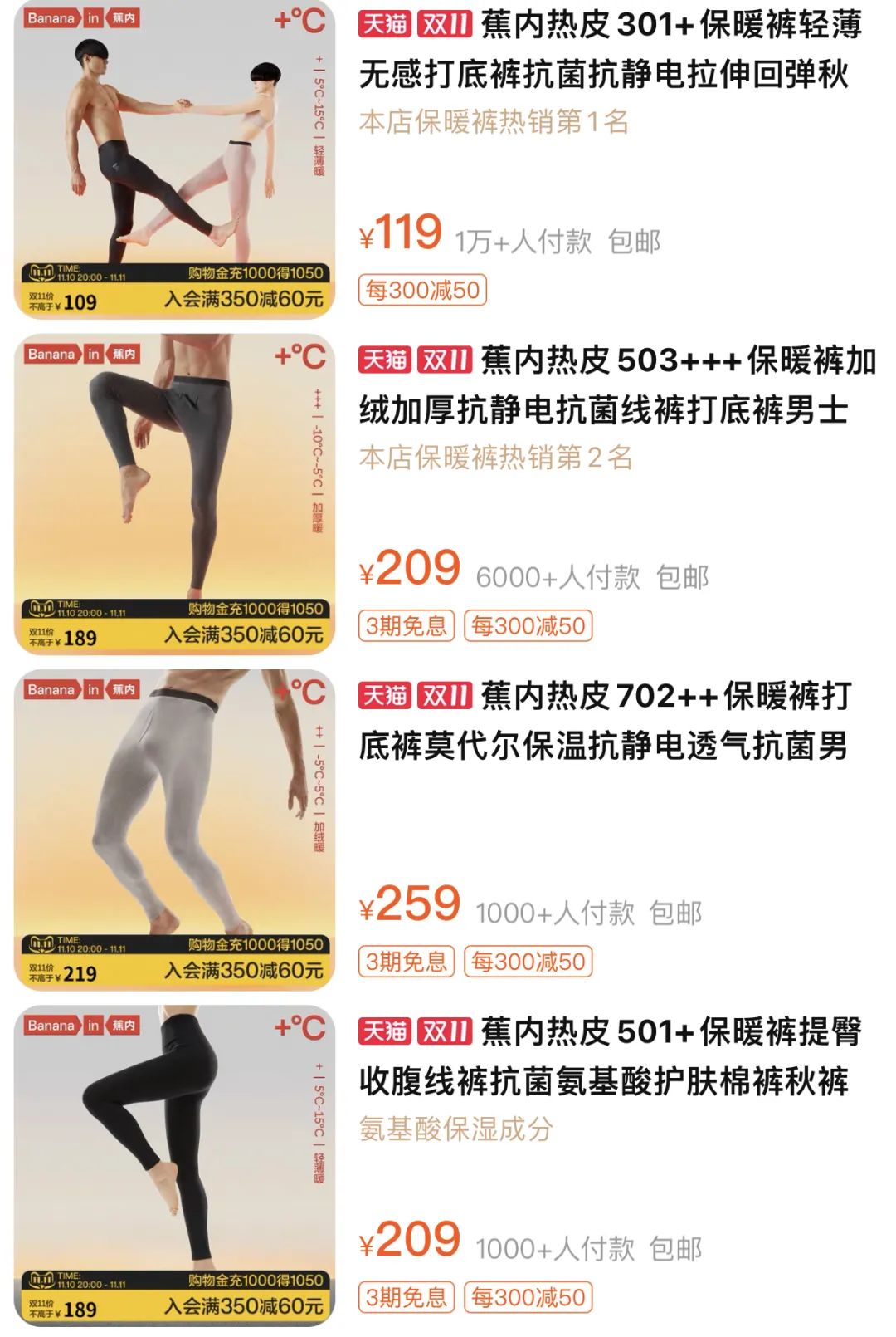 以蕉内为例,记者在其天猫旗舰店搜索发现,一条秋裤的价格低至109元,高则达259元,一套保暖内衣最高能达到599元;同类品牌ubras也与之相差无几,秋裤价格在180元左右。在淘宝直接搜索“黑科技保暖衣”,也会发现出现的保暖衣、保暖裤的价格多在200元左右。