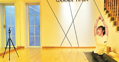 位于河北省秦皇岛市海港区的一家瑜伽会所内,瑜伽教练正在通过直播的方式为学员讲解课程。 曹建雄摄(人民视觉)