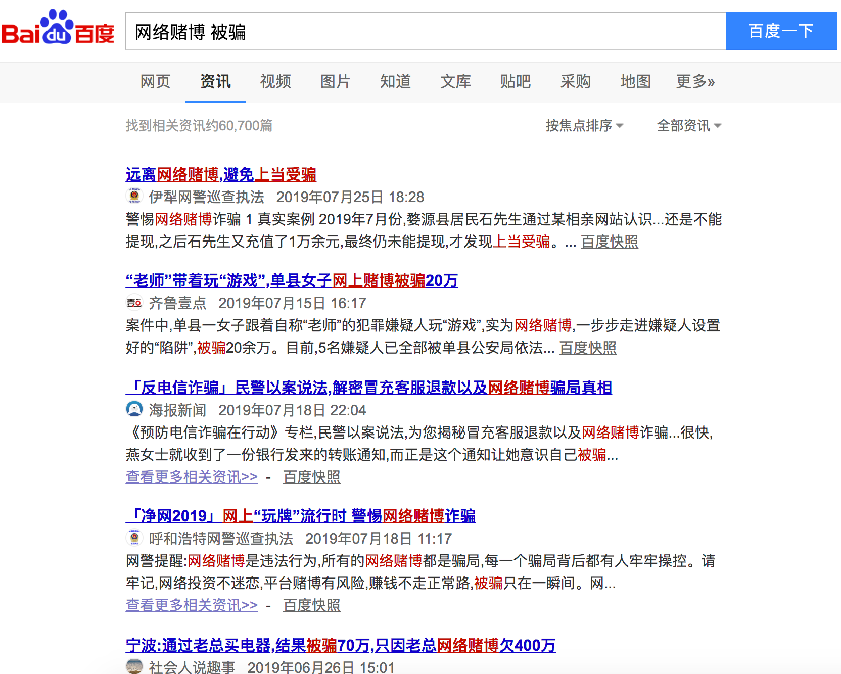 以“网络赌博”为关键词在搜索引擎进行检索,会发现大量用户被骗的例子。