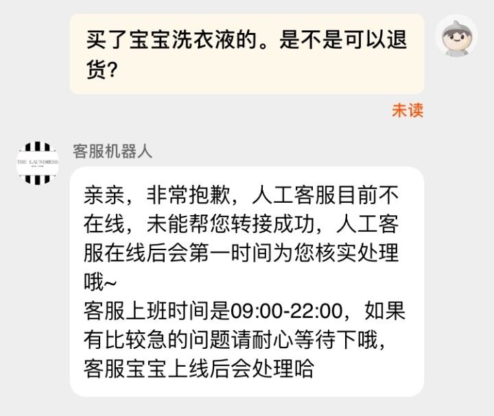 橙柿互动记者随即登陆天猫、京东及微信小程序品牌官方旗舰店,发现相关洗护类产品均已下架,只有去渍皂和香氛喷雾还在正在售卖中。记者尝试在The Laundress天猫海外旗舰店咨询客服是否可以退货,但截至发稿仍没有得到回复。