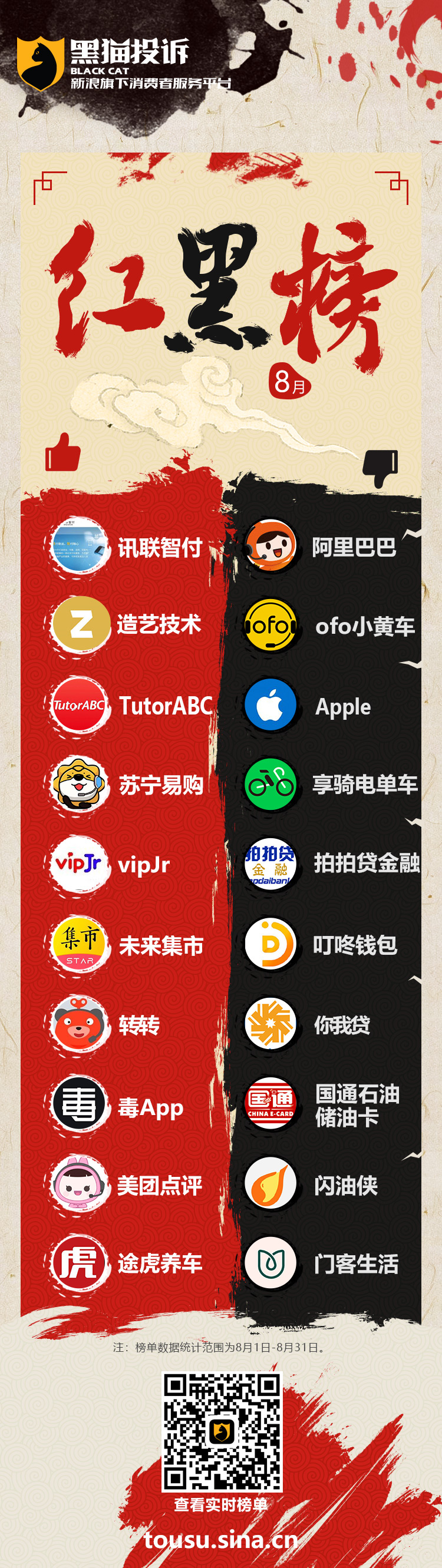 8月黑猫投诉企业红黑榜:讯联智付及造艺科技进红榜