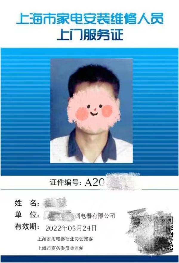 上海官方认可的家电安装维修人员上门服务证