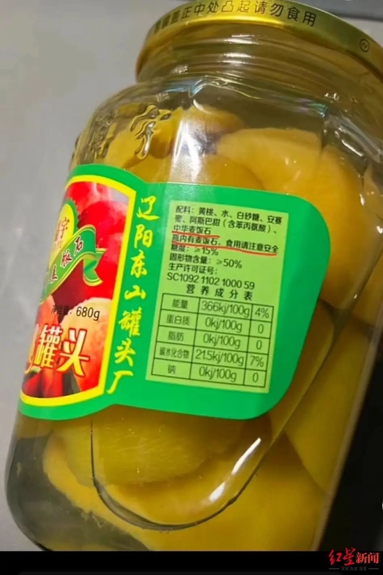 其他网友补充称,该罐头品牌为“嘉宇”,系辽阳东山罐头厂生产,配料表中有“中华麦饭石”,并提醒“瓶中有麦饭石,食用请注意安全”。