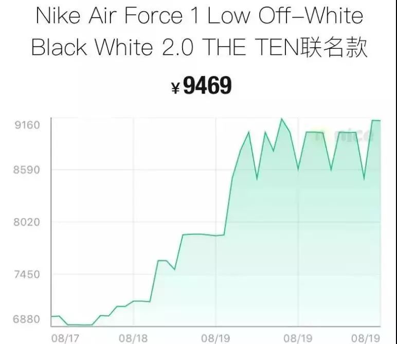 举个例子,AJ1 x OW芝加哥,从8000涨到1万,再到2万,还没封顶,现在已经炒到5万,黄金码甚至7万,简直比炒股还刺激。