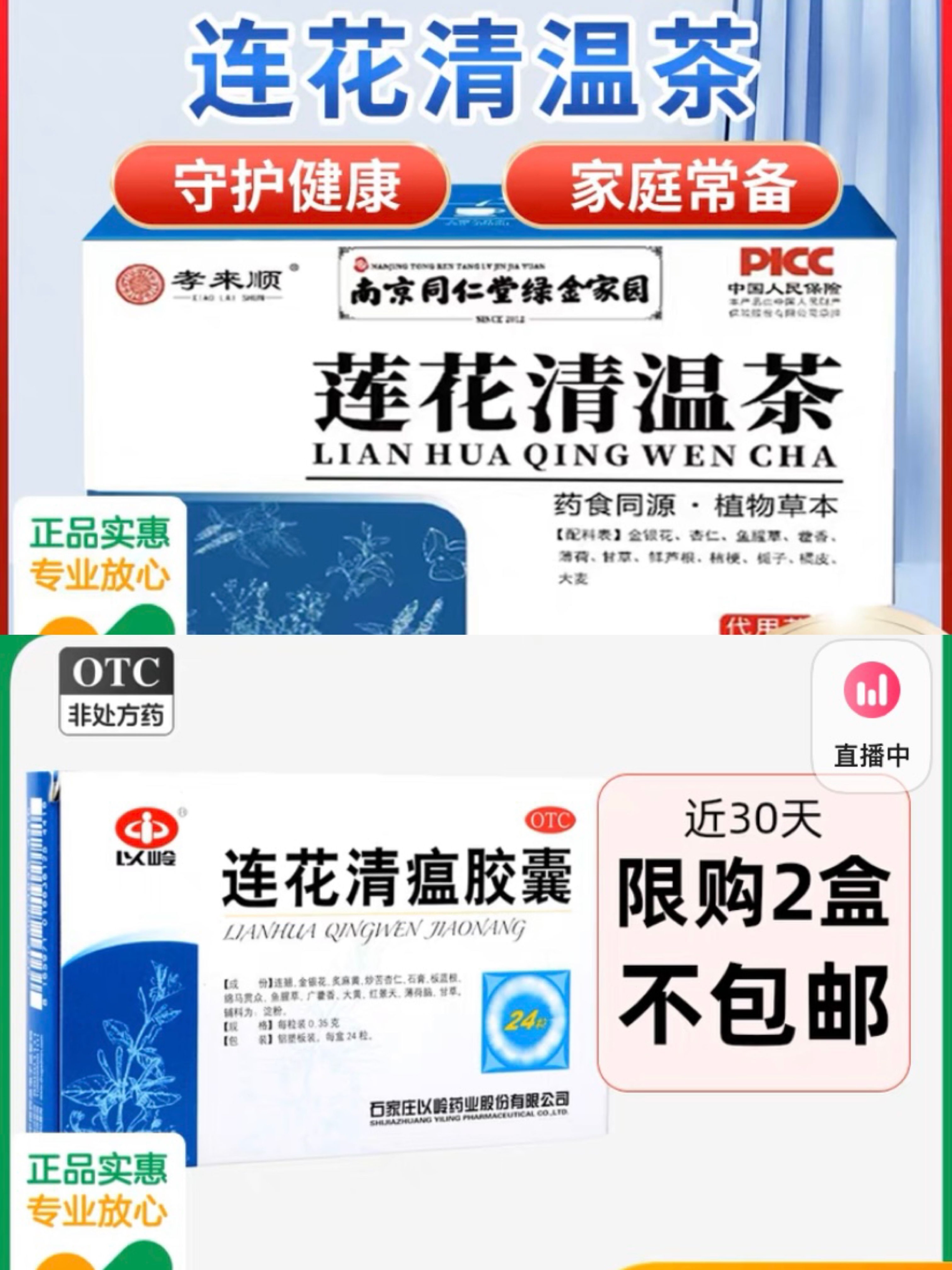 另一款名为“孝来顺南京同仁堂绿金家园连花清温茶”产品的卖家则告诉记者,茶包主要有清热解毒,宣肺泻热的效果,可以缓解鼻塞流涕、咳嗽、头痛、咽干等症状,且茶包可以长期服用,“日常喝”即可。在产品介绍页面这款茶包也曾标注“守护健康 家庭常备”字样。