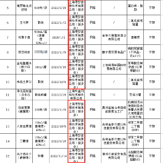 上海长宁市场监管通报!拼多多上多款产品不合格被下架处理,含虫草酒、纯莲子酒等