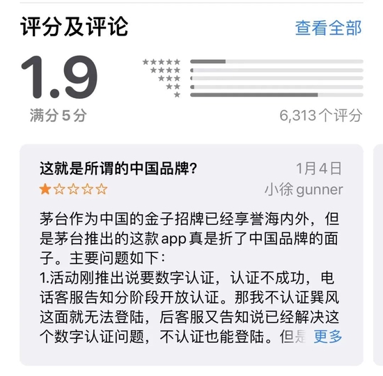 只不过这款app目前在苹果分1.9,比东八区的先生还惨。收不到验证码、游戏智障、不花钱不过关,充值几千几万的土豪韭菜才能进入排名,茅台的口碑还算不错,这次吊胃口又倒胃口的购买操作算是砸了招牌。