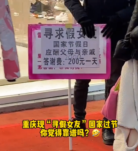 甚至在线下街头,也出现了举牌寻假女友回家过节的人。