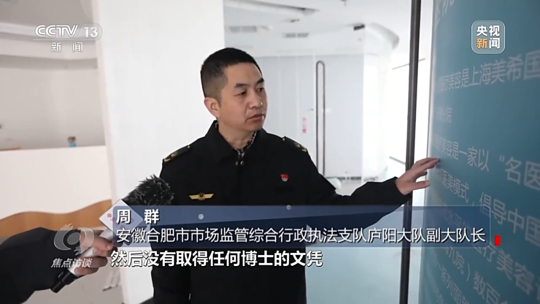 安徽合肥市市场监管综合行政执法支队庐阳大队中队长 张杨:经过调查发现,中韩国际整形美容医学会根本不存在,是他们自己杜撰的,美希国际医美教育学院的印章,也是他们自己在网上私刻的。