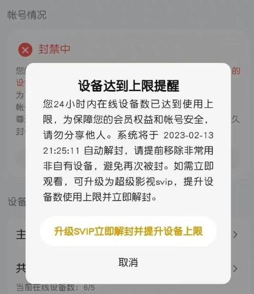 对此,有网友称:“有权收回该账号的VIP资格?那退钱不”“ 花钱的还被约束,这不是花钱买罪受吗”“ 有什么权利收回vip?不理解”“ 我花钱买了VIP,我爱登几个设备就登几个,你管我登几个呢,资本家吃相太难看了!”“我电视开一个我女儿看汪汪队,平板开一个我老婆看君子盟,我再手机开一个看三体,这很合理吧,凭啥就给限制了?”“凭什么封号呀,登陆不成功不就好吗”“被封禁之后,非SVIP只要购买SVIP即可立刻解封,赚钱的套路一把一把的”……