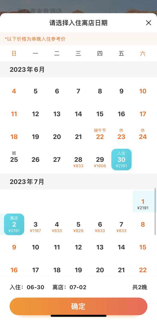 海口市五源河体育中心体育场附近的酒店也出现价格翻倍现象。比如,海口喜来登酒店6月30日-7月2日的房间价格,最低为2198元,而在此前后几天,该酒店价格在833元左右;海口雅特国际会议中心酒店6月30日的价格为2805元起,最高价位的房型为4505元起,而该酒店平时6月、7月的价格为最低965元。