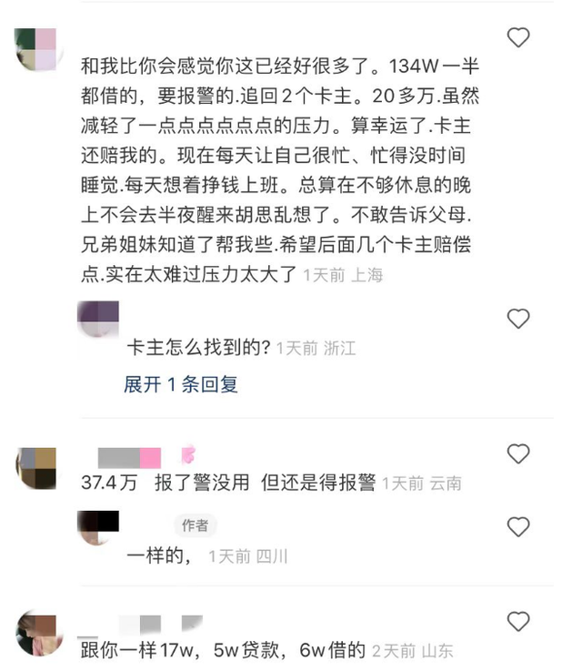 曾敏的帖文下面,有跟她一样遭遇的人留言