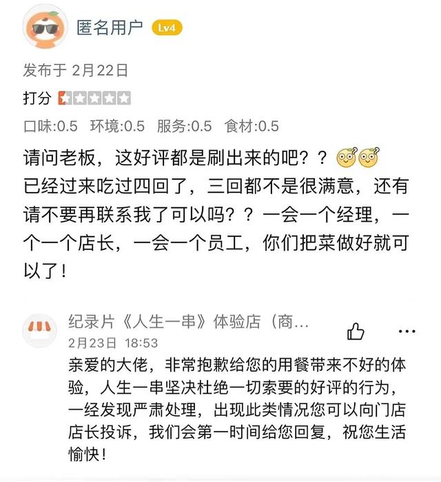 在大众点评发布了一条匿名差评
