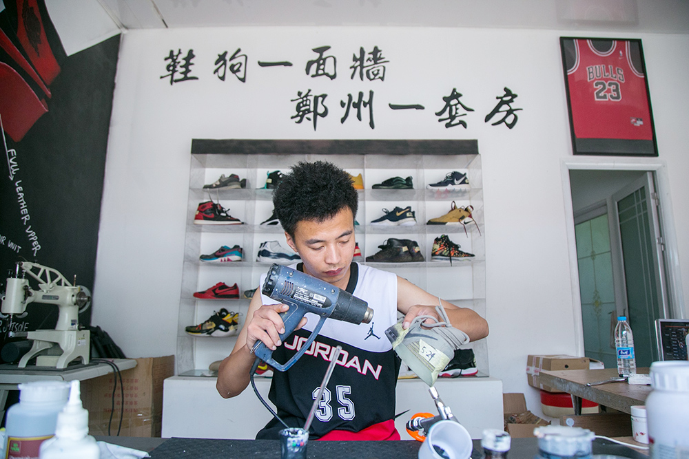 2020年8月10日,郑州,27岁的大学毕业生焦少华,因酷爱打篮球和球鞋文化,两年前在郑州大学城附近开了一家“鞋狗驿站”修鞋创业,成为一名“修鞋匠”,如今累计修复球鞋5000余双,月收入2万多元。
