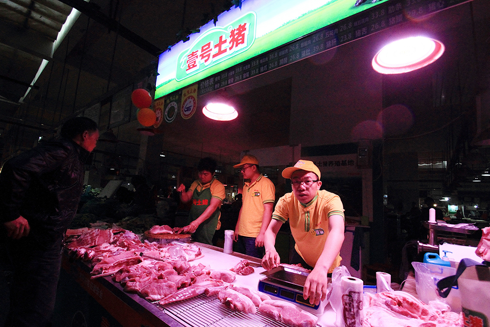 2017年4月27日,浙江绍兴市区一家农贸市场内,五位刚毕业的大学生正在这里售卖备受媒体关注的“北大猪肉佬”陈生创办的“壹号土猪”。据了解,在绍兴市场上,壹号土猪共有60名员工,其中70%以上均为大专、本科学历。一位毕业于湖南衡阳师范的大学生告诉笔者,由于公司升值空间较大,因此他特地放弃其他工作而争当猪肉佬。目前,绍兴市区有六个市场同时上演了这场“黑猪秀”。而在全国已有千余家连锁店,它的创始人就是被媒体炒得沸沸扬扬的卖出百亿身家的“北大猪肉佬”陈生。