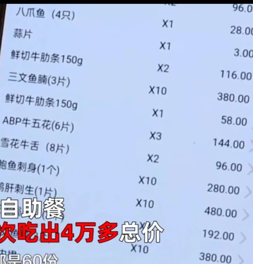 4月15日,据星视频报道,近日贵州贵阳,一顿218元的自助餐,女子月消费5次吃出4万多的总价,引发关注。