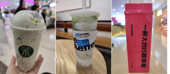 茉酸奶则突出强调自己的酸奶产地,来自草原酸奶之都乌兰察布,水果含量一杯奶昔等于一整颗牛油果,榴莲则来自马来西亚苏丹王榴莲。