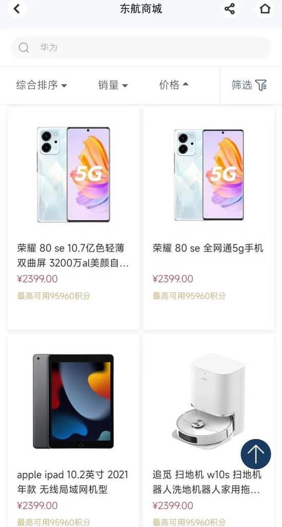 另外,积分还可以在东航商城里兑换商品。几百积分就可以兑换话费卡、视频会员月卡、纸巾等。积分非常多的话,10万左右积分可以兑换2000多元价值的手机、iPad、扫地机器人、电视等,50万积分则可以换价值超过1万的冰箱、电视、手机等物品。这么看来,50万积分一夜清零也是损失不少了。