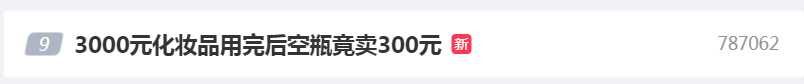 今日(6月27日),“3000元化妆品用完后空瓶竟卖300元”的话题也冲上微博热搜,引发网友热议。