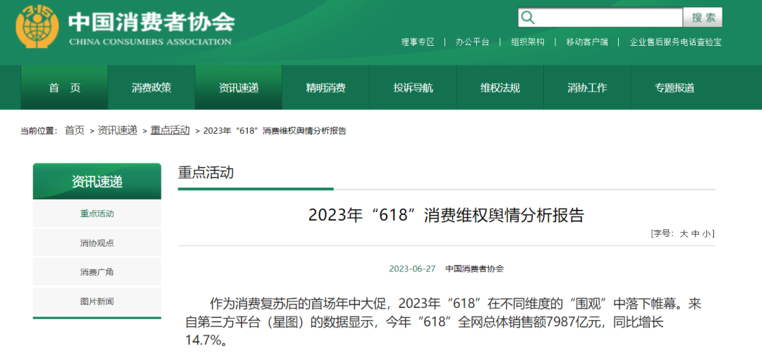 6月27日,中国消费者协会发布“618”消费维权舆情分析报告,一起来看