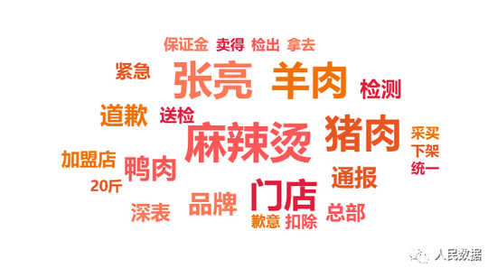 据人民数据资产服务平台数据显示,8月7日,此事开始在网络发酵,到8月8日热度达到高峰。从报道情感色彩来讲,高达98.83%内容较为敏感;相关热词涉及张亮麻辣烫、羊肉、猪肉、门店等。
