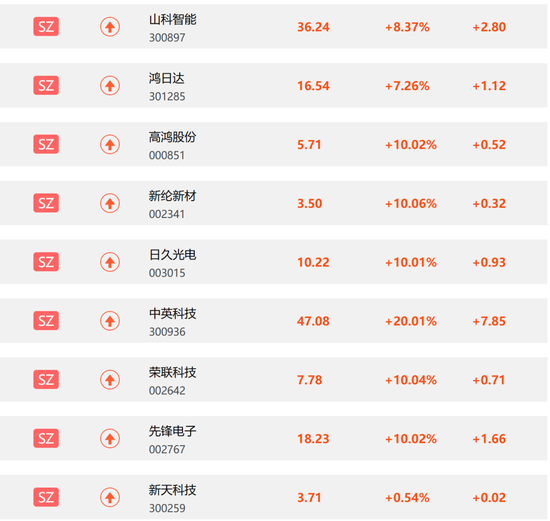 二级市场方面,华为概念股掀涨停潮。截至收盘,新纶新材、高鸿股份、中英科技、荣联科技、先锋电子、日久光电等十余只个股涨停,鸿日达、山科智能、新天科技纷纷跟涨。