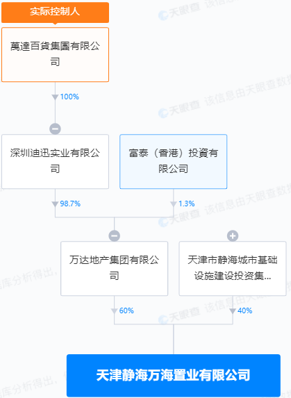 万海置业是万达地产集团有限公司(下称“万达地产”)的控股子公司,最终控股股东为万达百货集团有限公司。