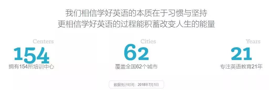 韦博英语官网显示,其“专注英语培训21年,是专业英语培训机构”,目前在全国62座城市共开设154家线下门店。