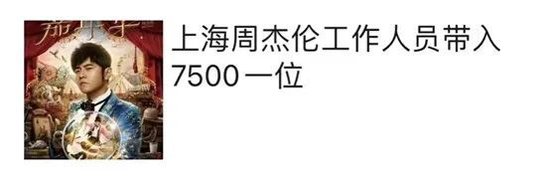 10月12日上午,仍有黄牛通过朋友圈发布周杰伦上海演唱会余票信息。该黄牛告诉北京商报记者,有工作人员资源,可带入内场,7500元一个人,当问及如何保证顺利进场,对方回应,中午就要到达演唱会场馆外,线上先提供个人信息,付款后保证顺利进场并且看完整场演出。