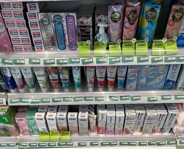 在长沙一家屈臣氏门店,记者看到,这里的牙膏普遍是二三十元。最便宜的是舒克益生菌牙膏,每支25元。佳洁士锁白牙膏每支28元。好来(原黑人)酵素牙膏每支28元。售价最贵的是LG竹盐喜马拉雅粉盐双管牙膏,看上去像一只护肤精华,每支99元。其次是各种口味的玛尔仕牙膏,每支89元。中间价位的则是一些大众品牌的高端产品,比如好来深导白牙膏每支69.9元,高露洁奇绩修护牙膏每支59.9元。