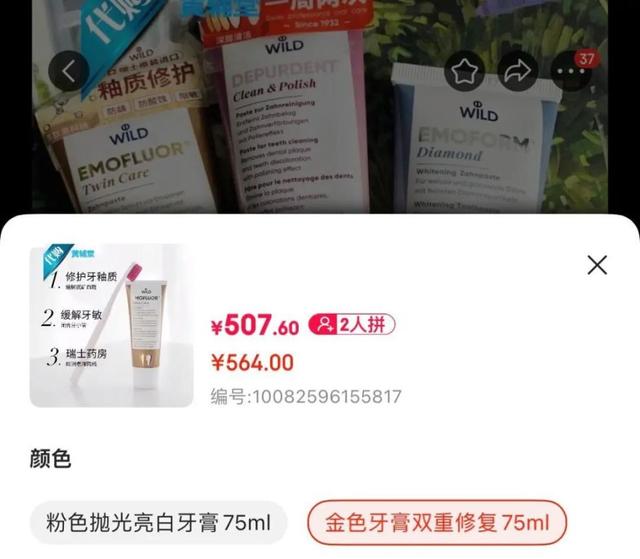 记者在京东平台按价格进行搜索,发现单价最贵的是一款瑞士Dr.wild怀尔德金色牙膏双重修复牙膏,单价为564元。这款牙膏的卖点看起来并不新鲜,如修复牙釉质、缓解牙敏,但“瑞士药房”几个字似乎瞬间将这款牙膏和普通牙膏拉开差距。