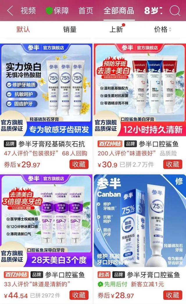 在拼多多,畅销款牙膏既有实惠便宜的老品牌,也有价格略高的新品牌。拼多多相关业务负责人告诉记者,20-30元价格带是目前卖得最好的区间。“畅销款式中,最便宜的一款是来自联合利华旗舰店的中华牙膏,一大一小两支6.89元;稍贵些的则是国产品牌参半的益生菌美白牙膏,2大4小活动价49.9元。”