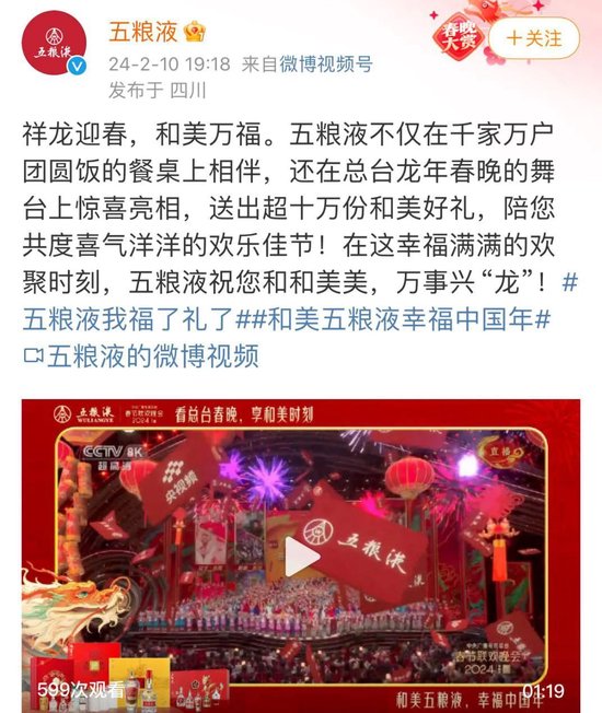 记者发现,酒企一直是春晚舞台上的大户,从央视春晚到各地方台春晚都活跃着各大酒企的身影。而龙年春晚最活跃的酒企当属洋河股份、五粮液和古井贡酒三大厂。