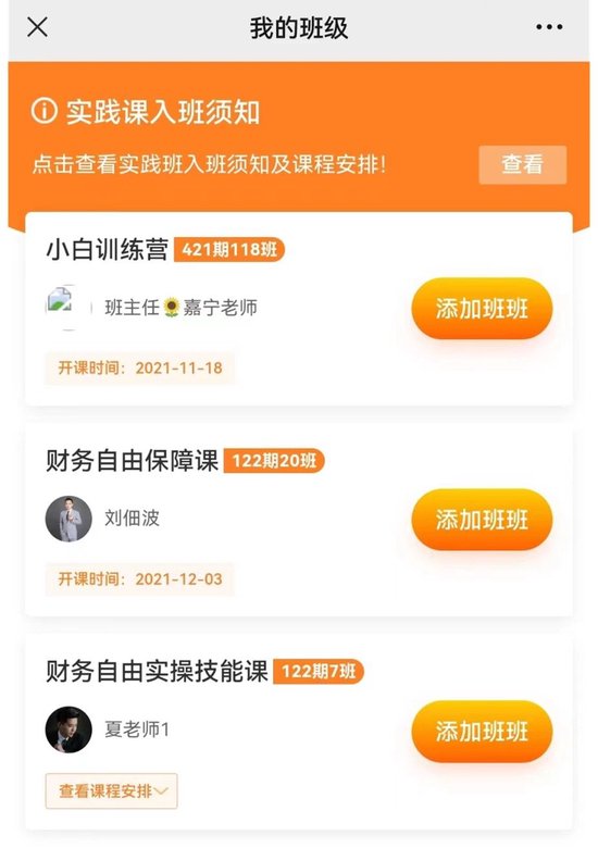 消费者被高收益诱导报名了多个高阶理财课。