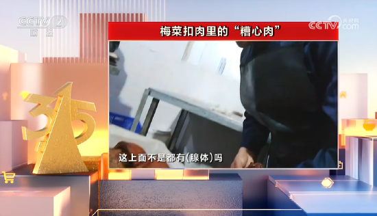 近年来,预制菜销售火爆,“梅菜扣肉”成“顶流”。安徽省阜阳市是梅菜扣肉预制菜的主要产区之一。3·15晚会记者接到举报,当地有个别企业用未经严格处理的槽头肉制作梅菜扣肉预制菜。记者在多个预制菜生产企业看到,车间内摆满了用槽头肉做好的熟肉制品。在安徽厨先生食品有限公司的院子里,露天摆放着大量的冷冻槽头肉。有的甚至丢掉了外包装,肉完全暴露在了室外。室内,有工人将加工好的劣质槽头肉进行切片,有工人用槽头肉和梅菜进行装碗封装。