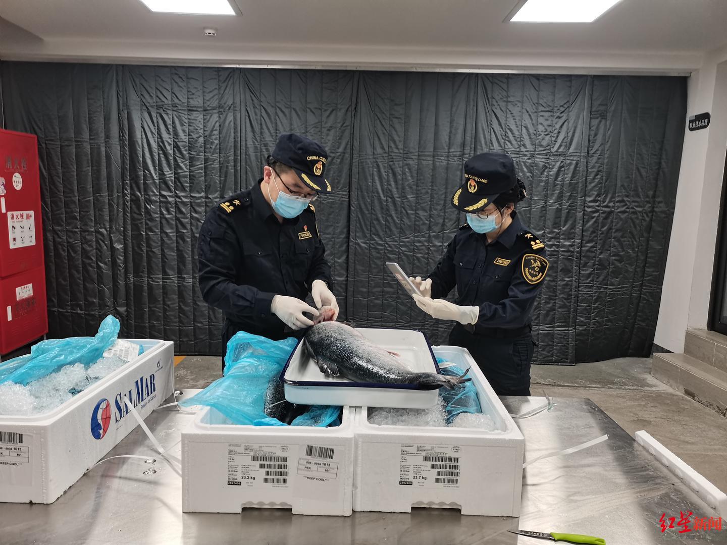 4.2吨进口冰鲜三文鱼,自航班落地完成口岸检疫、取样送检后,即被允许附条件提离,全流程仅用2.5小时。