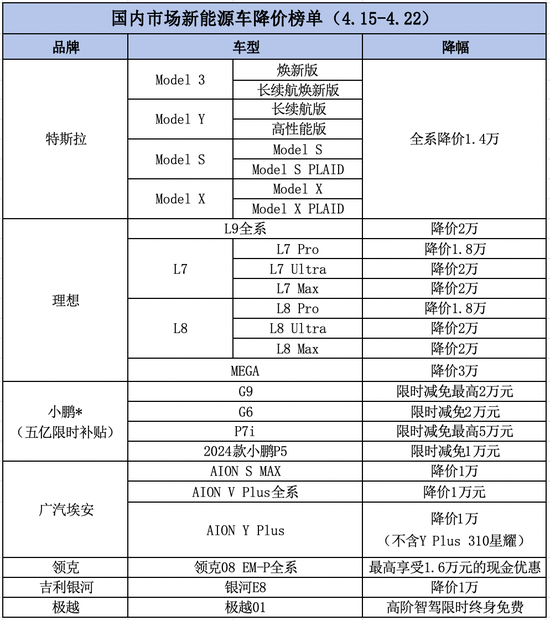 小鹏汽车4月20日宣布,即日起至2024年5月5日,推出限时5亿元购车补贴,覆盖小鹏G9、G6、P7i、2024款小鹏P5共计四款车型。理想汽车也罕见地加入了价格战,理想官方今早发布全系降价决定,宣布终端售价调整,降幅最高3万元。
