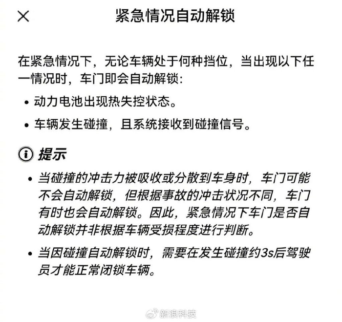 针对该问题,汽车行业分析师张旭告诉红星资本局,“有一个国标要求车辆碰撞后需要能够从内外打开,它定义的是结果,依我之见,应该算是对碰撞后自动解锁的强制规定。”