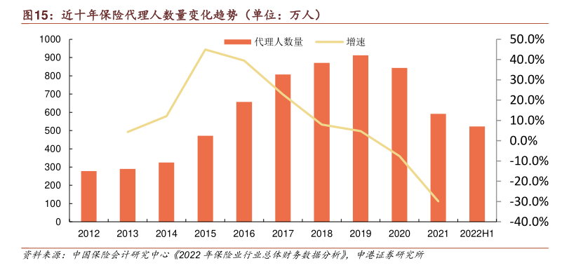自2019年行业代理人数量达到912万人的顶峰后,近年来,这一群体规模呈现大幅下滑。根据业内交流数据,到2023年,人身险个人营销员数量跌破300万人,较4年前的峰值减少了近七成。代理人数量快速下降,给保险公司短期业绩造成明显冲击。