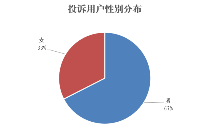 数据分析显示,投诉者中,男性用户占比为67.49%,女性用户占比为32.51%。这表明在投诉者中,男性用户的比例较高,反映了男性用户在使用产品或服务时遇到问题的倾向性更高,或者男性用户在面对不满意的服务时更愿意表达不满和提出投诉。企业在处理客户服务问题时应考虑性别差异,有针对性地解决问题。