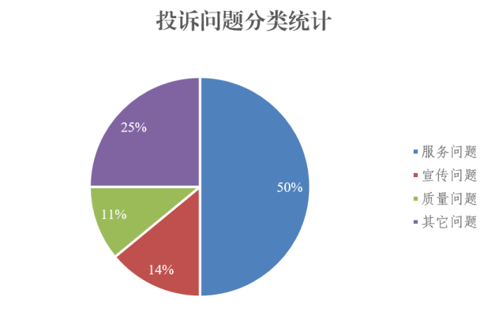 ——宣传推广类相关投诉共3216例,占有效投诉总量的约50%。消费者反映的问题主要包括:虚假宣传、虚假促销、虚假打折、虚假承诺、承诺不兑现、合同欺诈等。在产品推广和市场宣传方面可能存在的误导消费者、夸大宣传等不当行为。