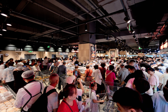 今日永辉超市(601933)位于郑州信万广场店恢复营业,经过胖东来调改后正式与消费者见面,现场排起了长队,由于顾客太多,超市内限流,网红月饼和啤酒中午即销售一空。