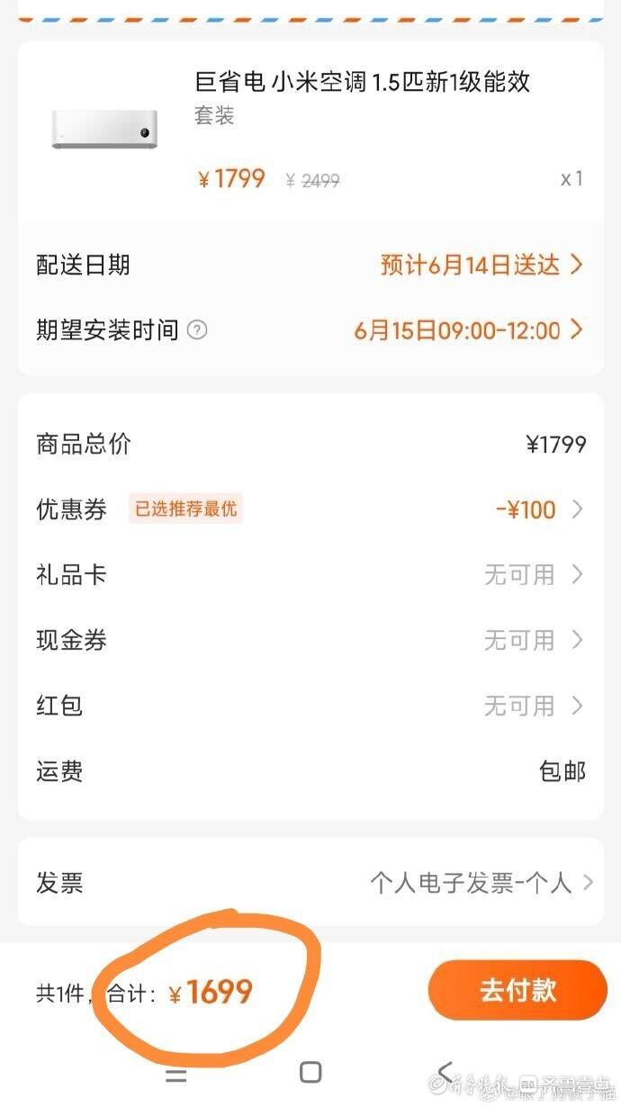 据赵先生反映,他购买的小米巨省电1.5匹空调型号为“KFR-35GW/N1A1”,他在多个平台查到的价格不同。“以前米家APP上是1799元,现在1699元就能买,而抖音商城上1799元还能送小爱音响,如果不要音响可以优惠88元,价格很乱,一般人真不知道从哪买好。”赵先生说,现在反映了小米空调价保这个问题,只能等48小时后商家的回复了。