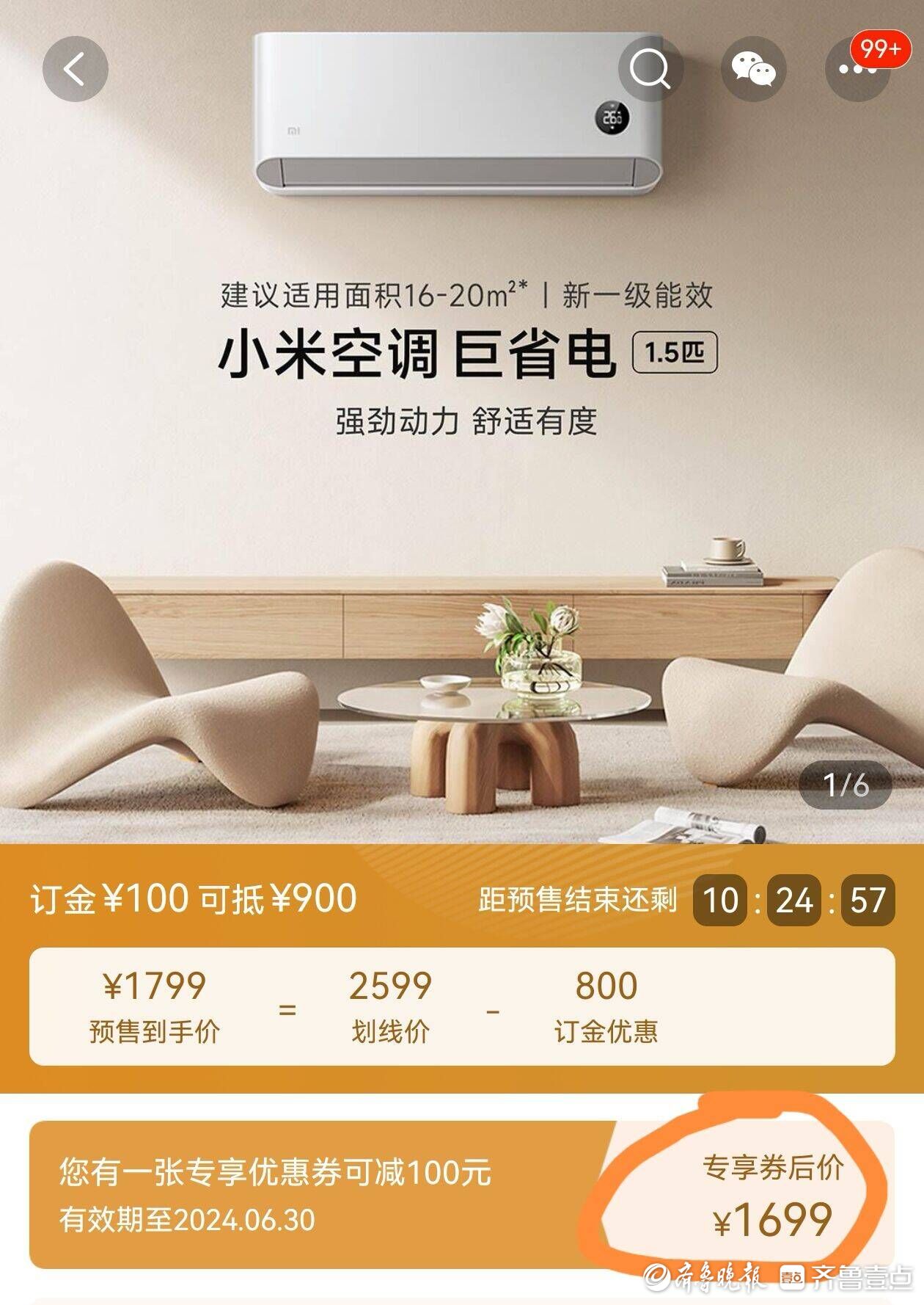 “冲着618年中大促,5月26日,我在米家APP下单了小米自营的一台小米空调,当时商家提供了价保服务,结果买了才20天就降价了,向商家申请价保服务却不灵。”日前,赵先生向齐鲁晚报·齐鲁壹点反映,小米空调不到1个月降价100元,有价保服务降价却不价保,记者调查发现该款小米空调的价保“不灵”并非个例,多名消费者吐槽空调降价后无法享受价保。