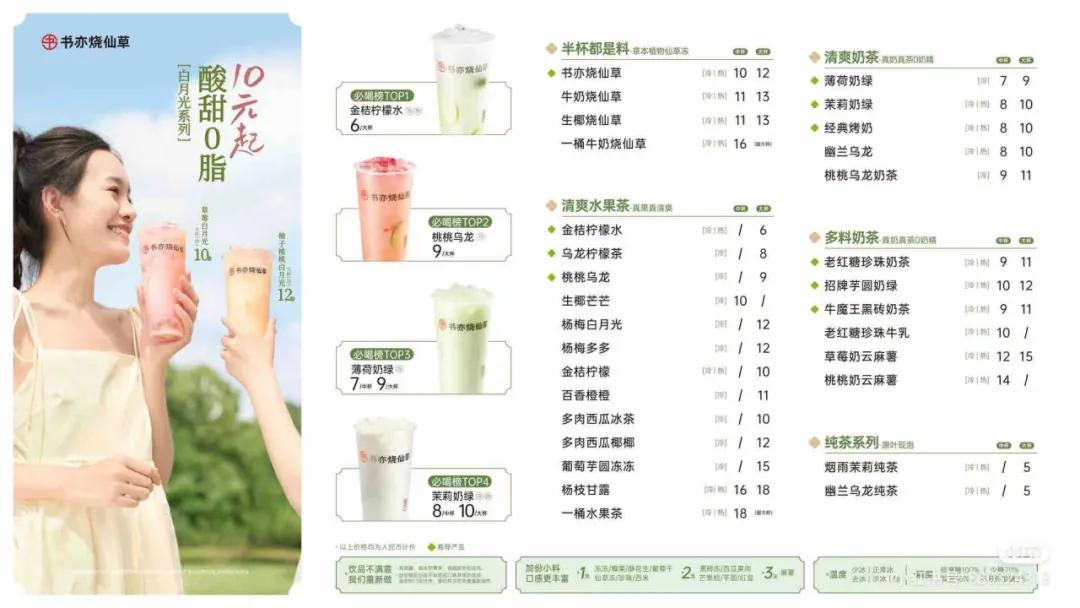 当初凭借着细分赛道以及性价比的优势,书亦烧仙草在茶饮市场脱颖而出,并且逐渐在新茶饮第一梯队站稳了脚跟。