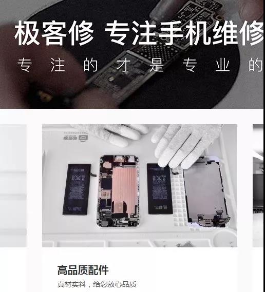 手机维修行业,服务不透明常常被人诟病,偷换零件、小病大修等问题更是频频曝出。在一篇宣传稿中,“极客修”表示其在创立之初就定下了“三个透明”:报价透明、维修透明和服务透明。